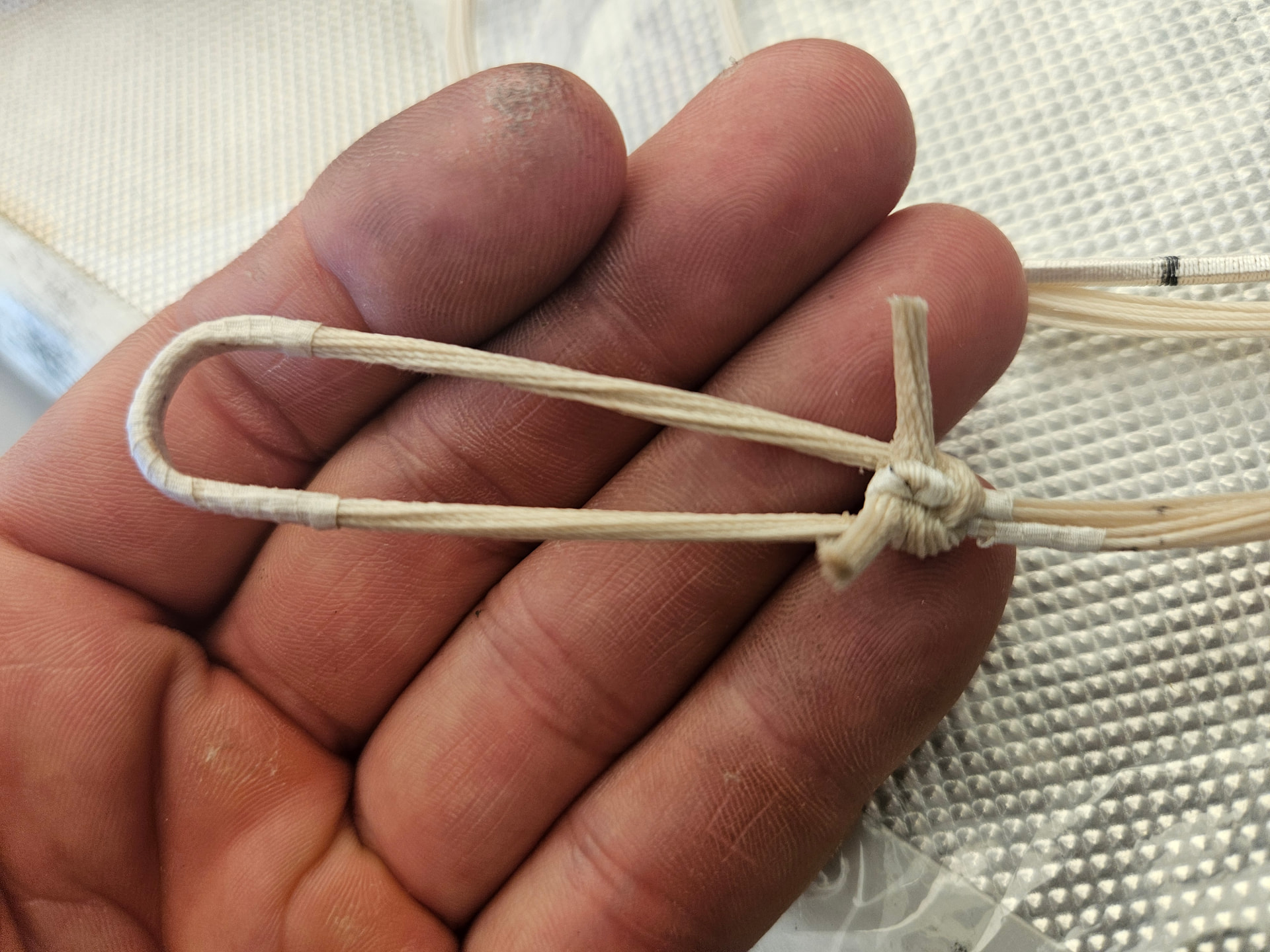 Multa löytyy tätä jännemateriaalia ja siitä voisi tehdä testijännettä. Sinällään ei niin lupaavaa kamaa, koska kuitu on punottua, eli sisältää kierrettä eikä suoria pitkiä kuituja. Voipi olla samaa materiaalia mistä Ivar tekee jänteensä. Näyttää siltä että suomen silkkikaupasta saatava silkki on maailman parasta.
