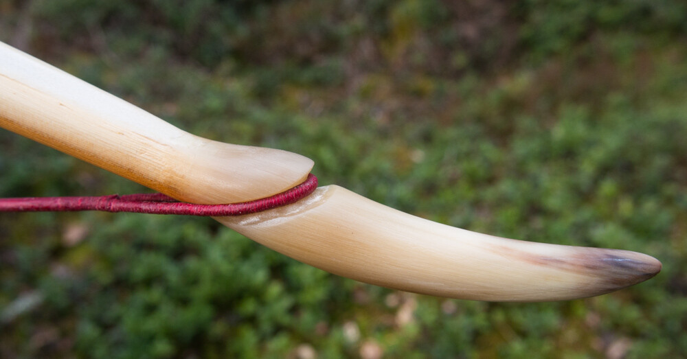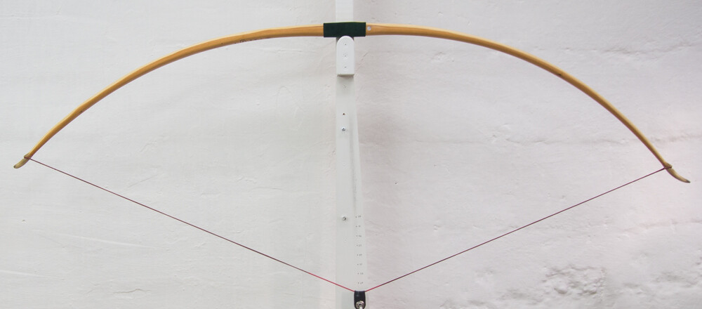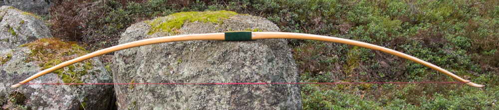 Marjakuusijousi, 45 paunaa 28 tuuman vedolla. Materiaali on lännenmarjakuusta (Taxus brevifolia). Pituus nokista nokkiin 186 senttimetriä, maksimileveys kahvassa 32 millimetriä, massa 596 grammaa. Aihiossa oli pieniä virheitä selässä, niin päällystin sen vuohen raakanahalla, varmuuden vuoksi. Aihio oli myös hieman myötäkaarava ja nyt siinä on noin 50–60 millimetriä myötäkaarevuutta. Nokit valkoisesta sarvesta, kahvassa puuvillasamettia. Pintakäsittelynä ohuelti öljylakkaa, joka on hiottu mataksi. Jänne on silkkiä, 44 säiettä, vetolujuus 315 paunaa (kerroin 7), massa 123 graania.