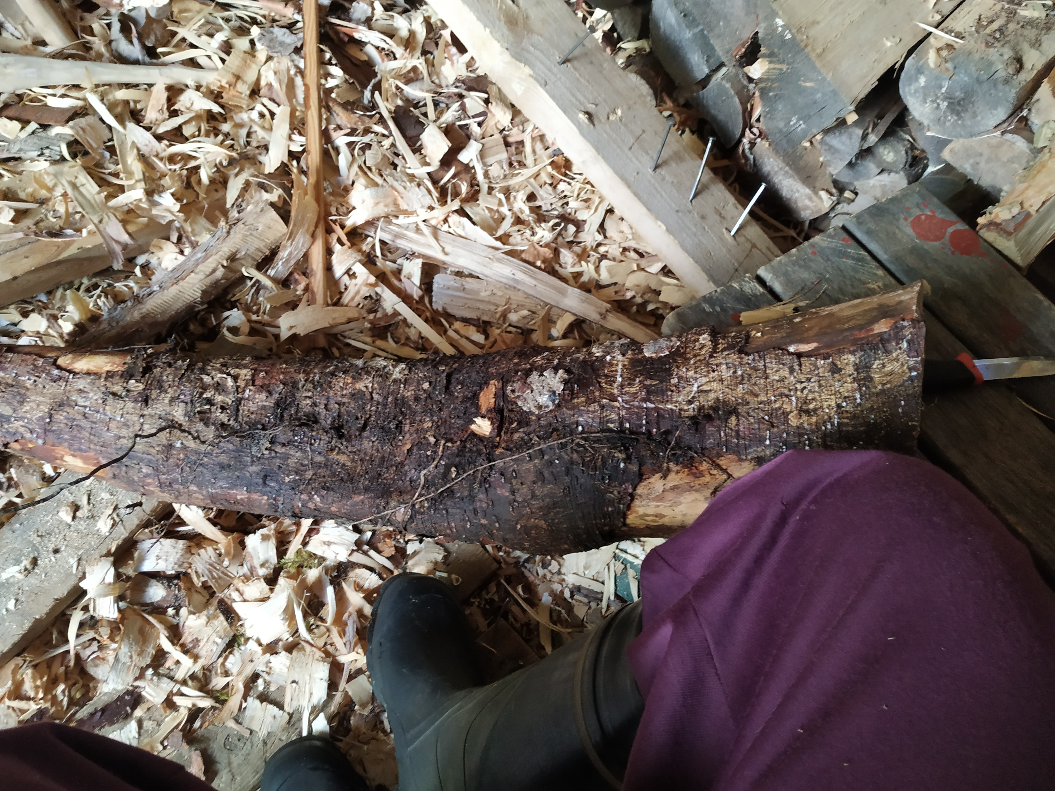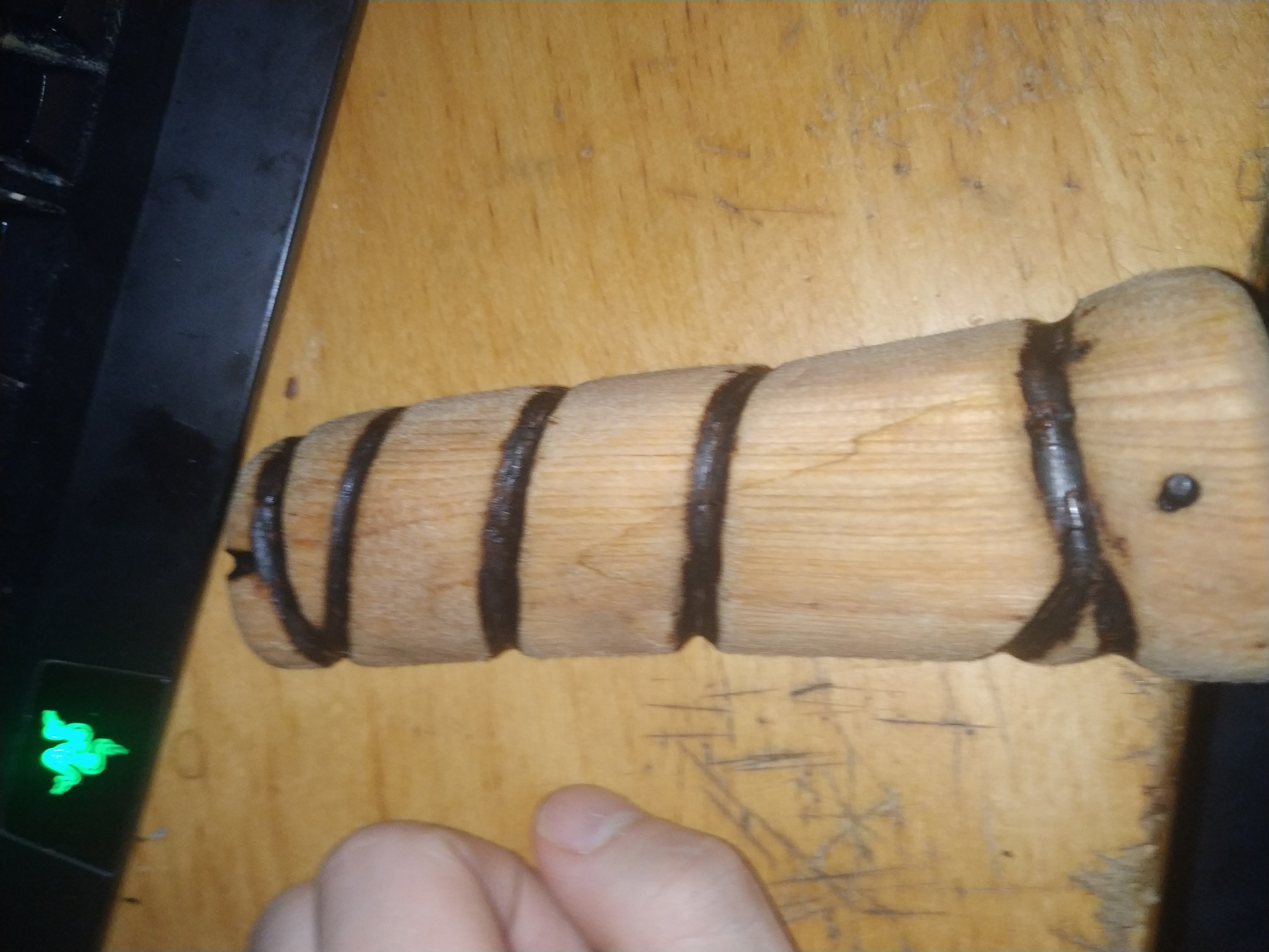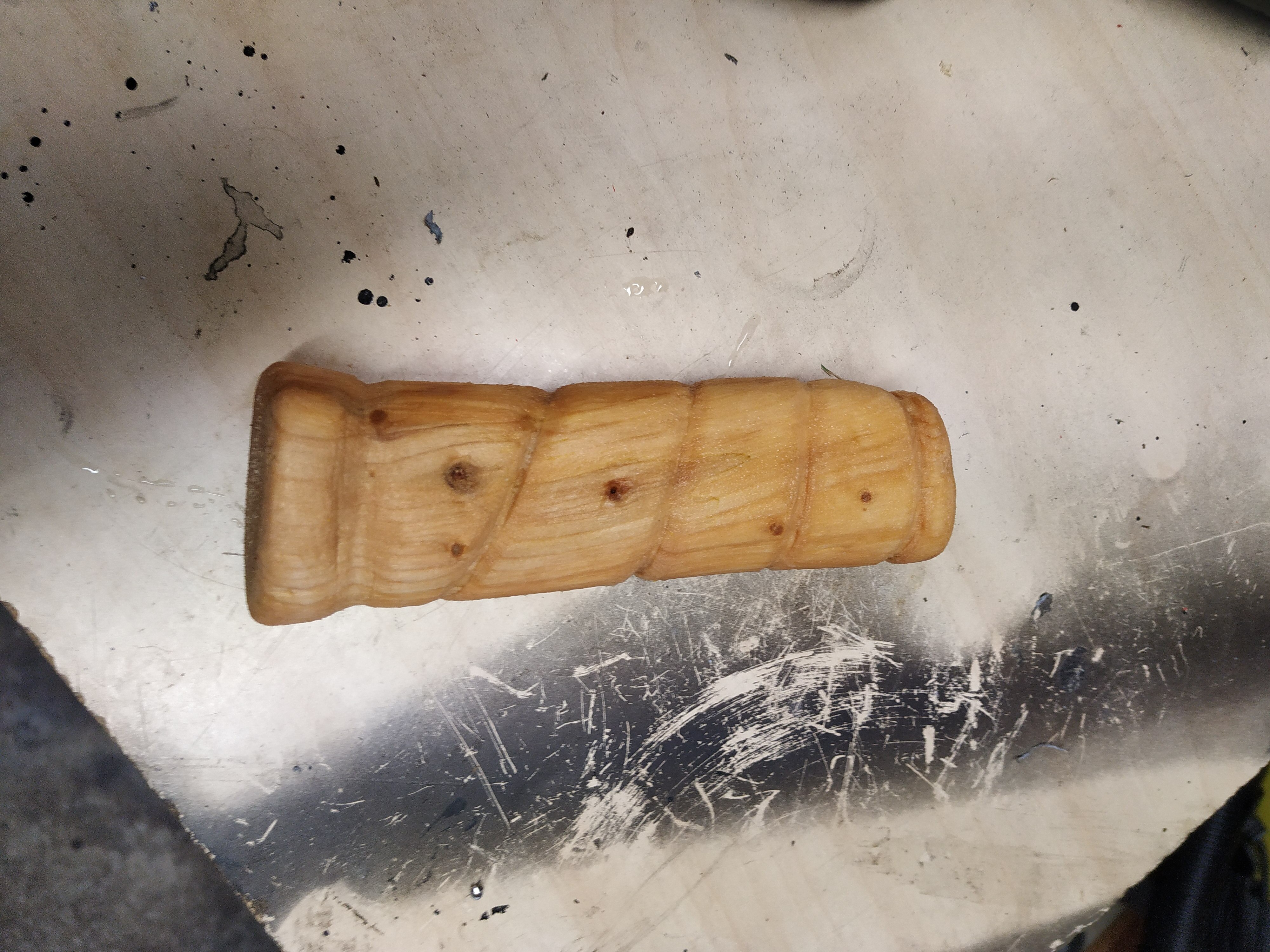 Pääosin muotoilin puukolla, puukonkahvan. Kyl tiedän, että yleensä kahva tehdään jälkeenpäin mut teki mieli kokeilla kaivertaa. Jos saa set-upin, nii vois kokeilla takoo terän.