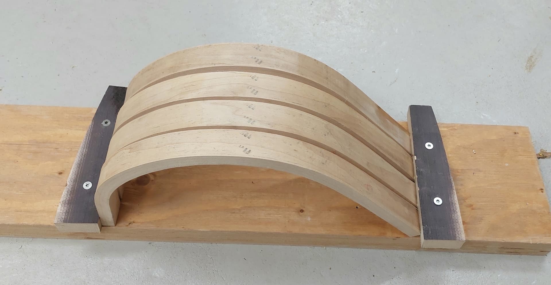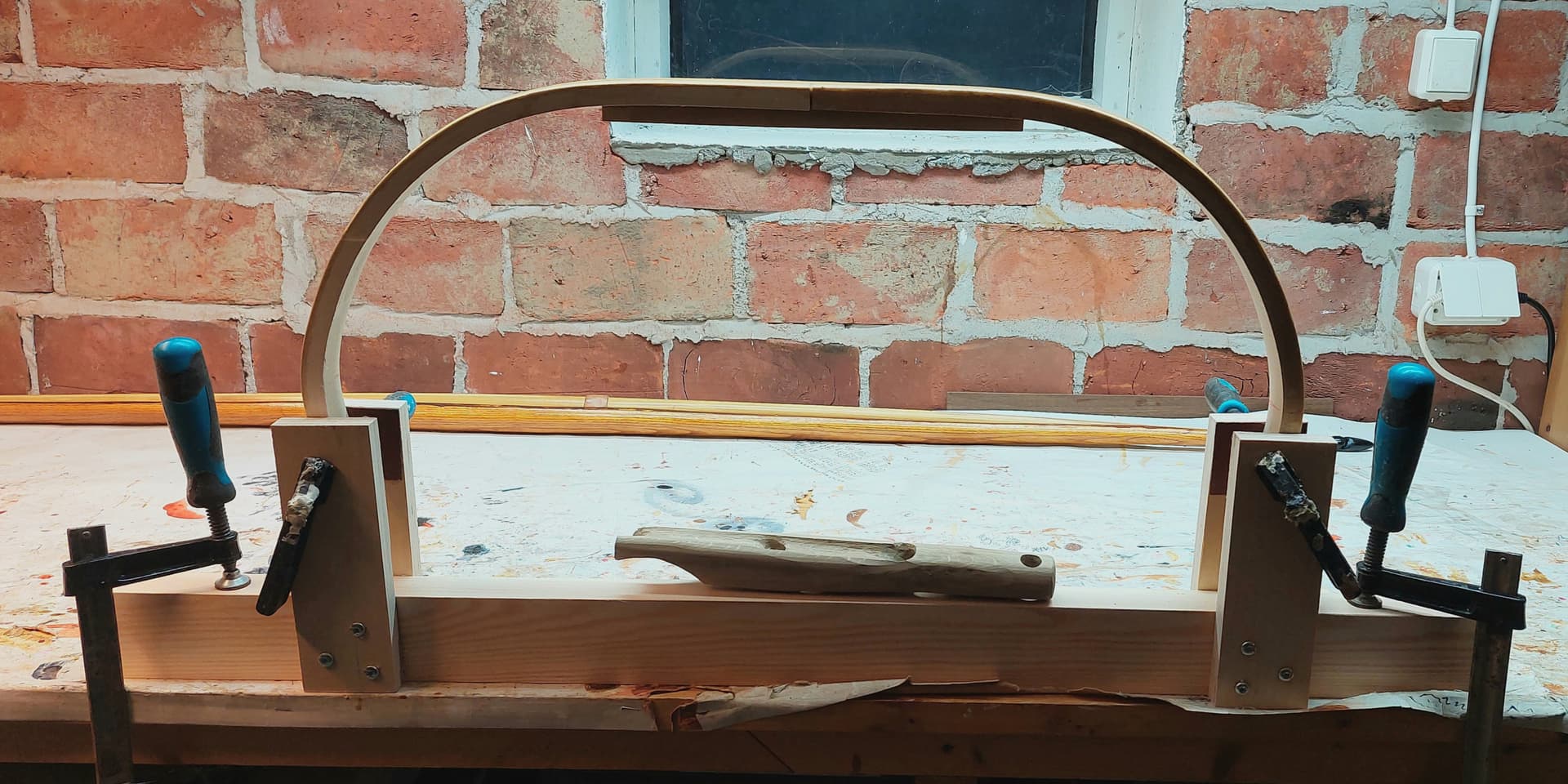 Runkojen taivuttelua kahteen pituusjouseen. Näihin liimaan sarvet epoksilla, pitää sitäkin kokeilla.