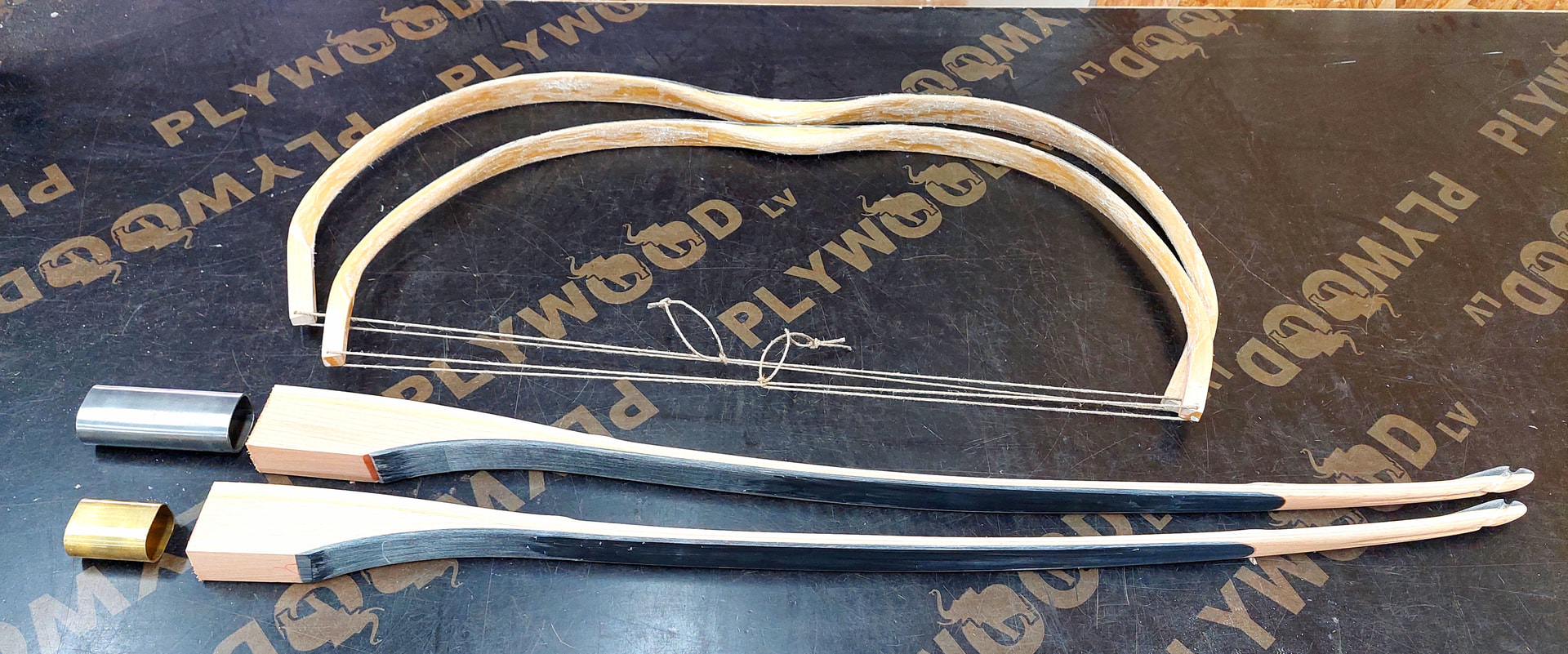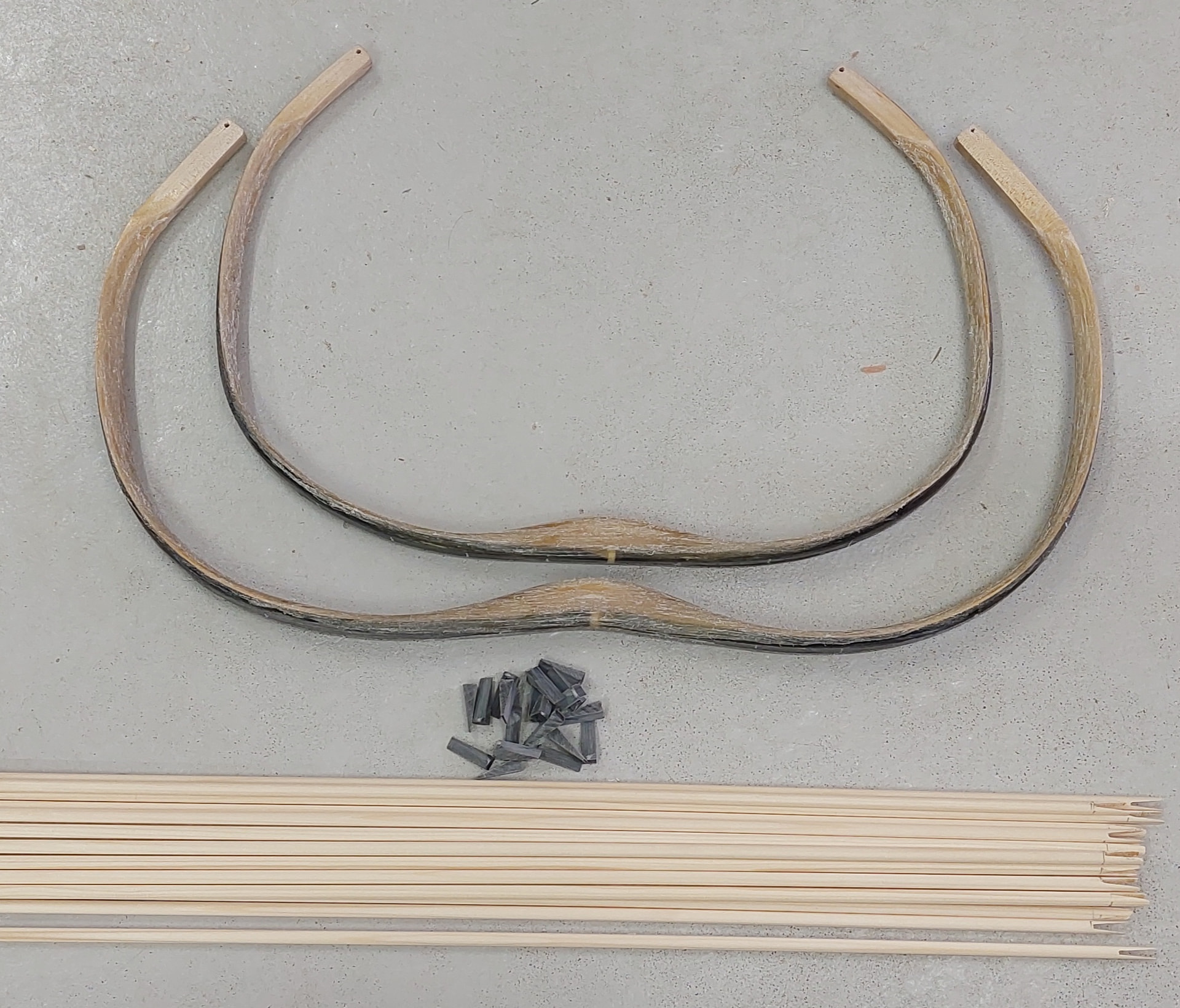 Sarvijouset hiottu viimeistä jännekerrosta varten. Sekä sarvipalat sahattu ja hiottu American round -nuolisettiä varten. Kyllä nyt marjakuusijousta varten pitää olla sarvinokkivahvistetut nuolet! Kärkivahvistusta en tosin ala näihin tekemään.