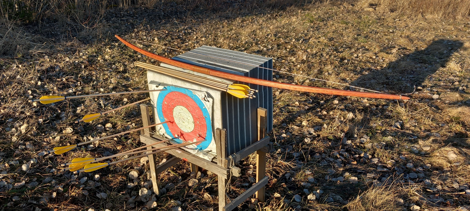 Ei kummastakaan. Jousi on niin nätti, että se ei voi olla syy osumattomuuteen. Eikä mieskään, koska edes @Lehtis ei ammu noin pieneen taustapakkaan 20 metriltä!