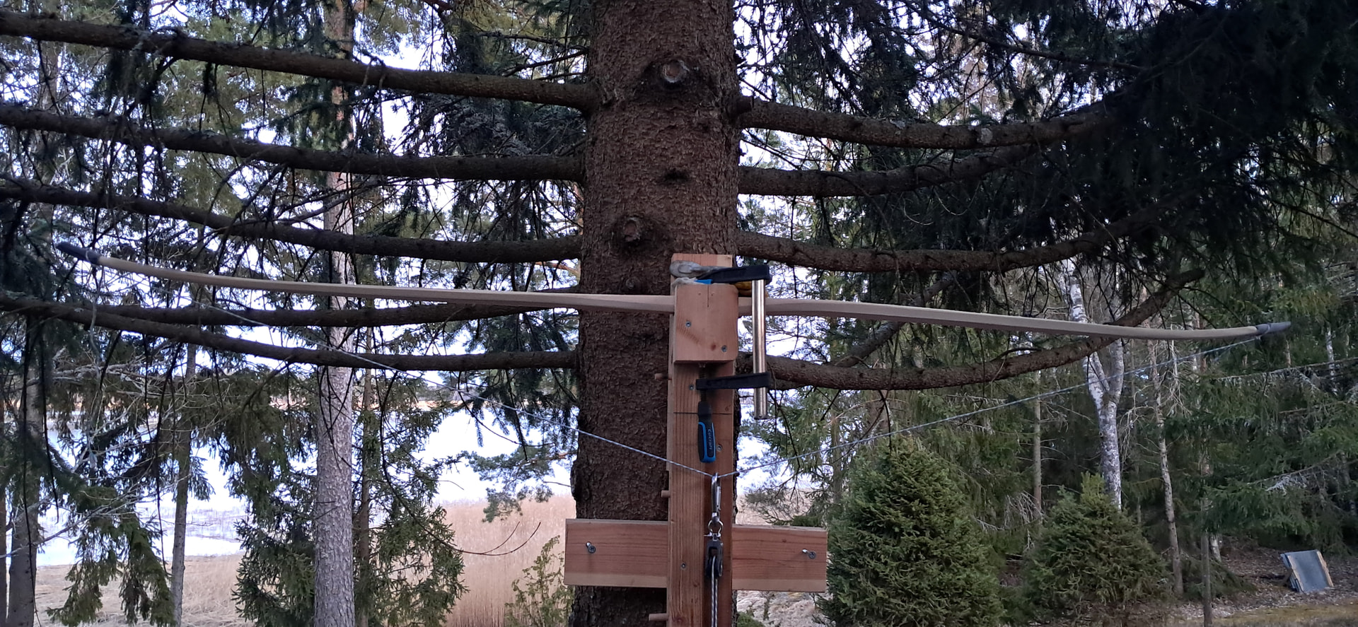 Nyt pääsin mökille niin viritin tilleripuun kuuseen kiinni niin voi jopa saada jotain valmiiksi. Kotona taas aika rajalliset mahdollisuudet tehdä mitään jousille. Oon mä välillä sisällä raspaillut mutta ei sitä kauaa viitsi kerrostalokämpässä harrastaa.