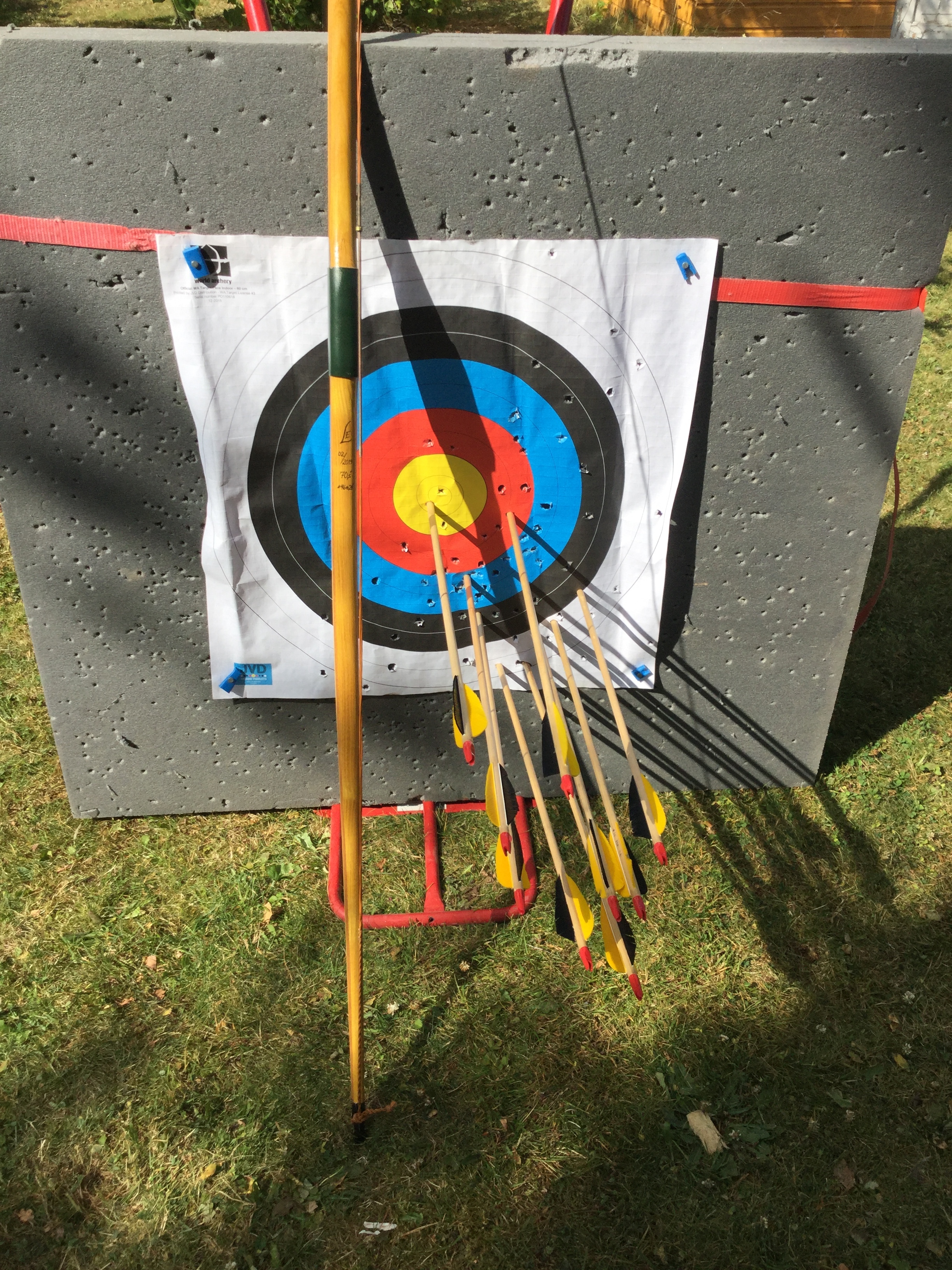 Kyllä mestari jousensa tuntee. Lisäsin väliä 15mm ja heti ekat 4 nuolta keltaselle. Käyttäytyi seuran maastoradallakin paremmin ennakoitavasti. Olen tottunut että vähän pienempi väli riittää, mutta tuo jousi ei sillä toimi.