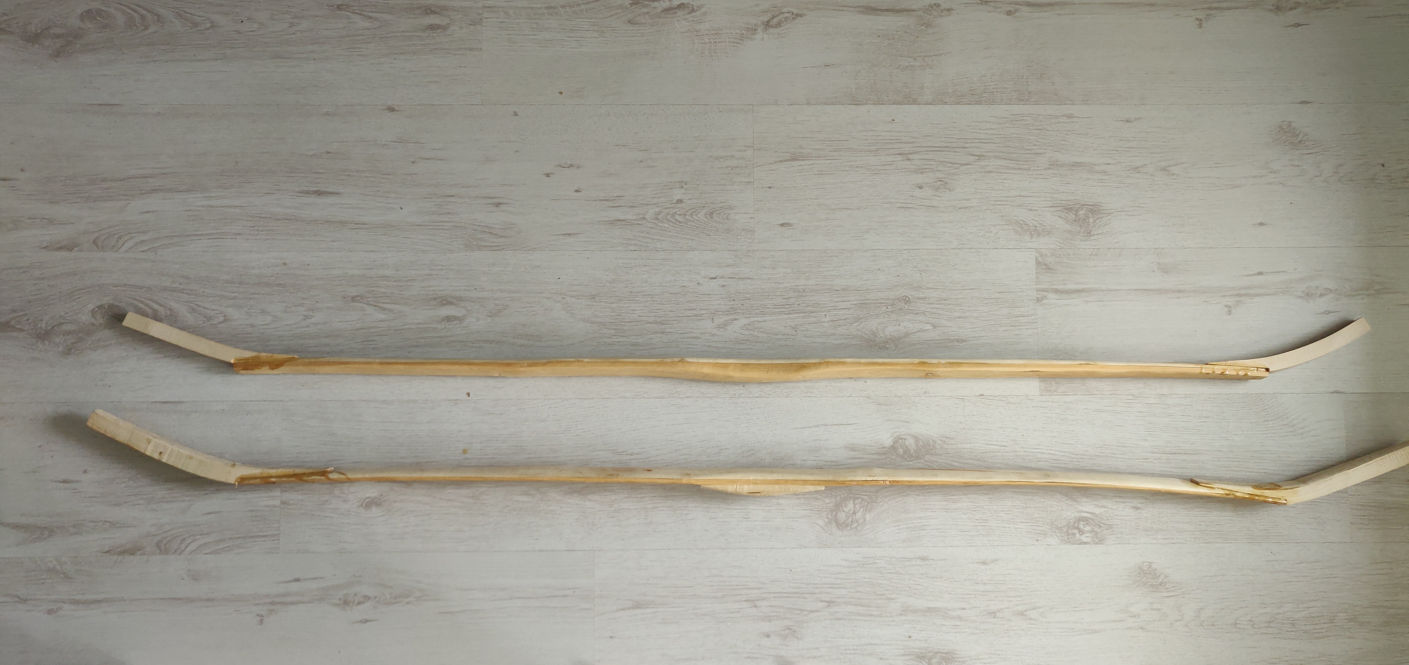 Pari erilaista sakaramallia piti tehdä, mutta tuli lopulta tommoset. Tuomea toiset ja toiset vaahteraa. Jotain 163 ja 168cm pitkiä nyt. Molemmat painaa n. 700g vielä että on siellä massaa johonkin 60-80 paunaiseksi, mutta ei nuolasta ennenkö tipahtaa.