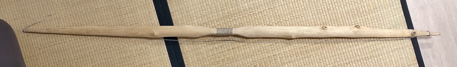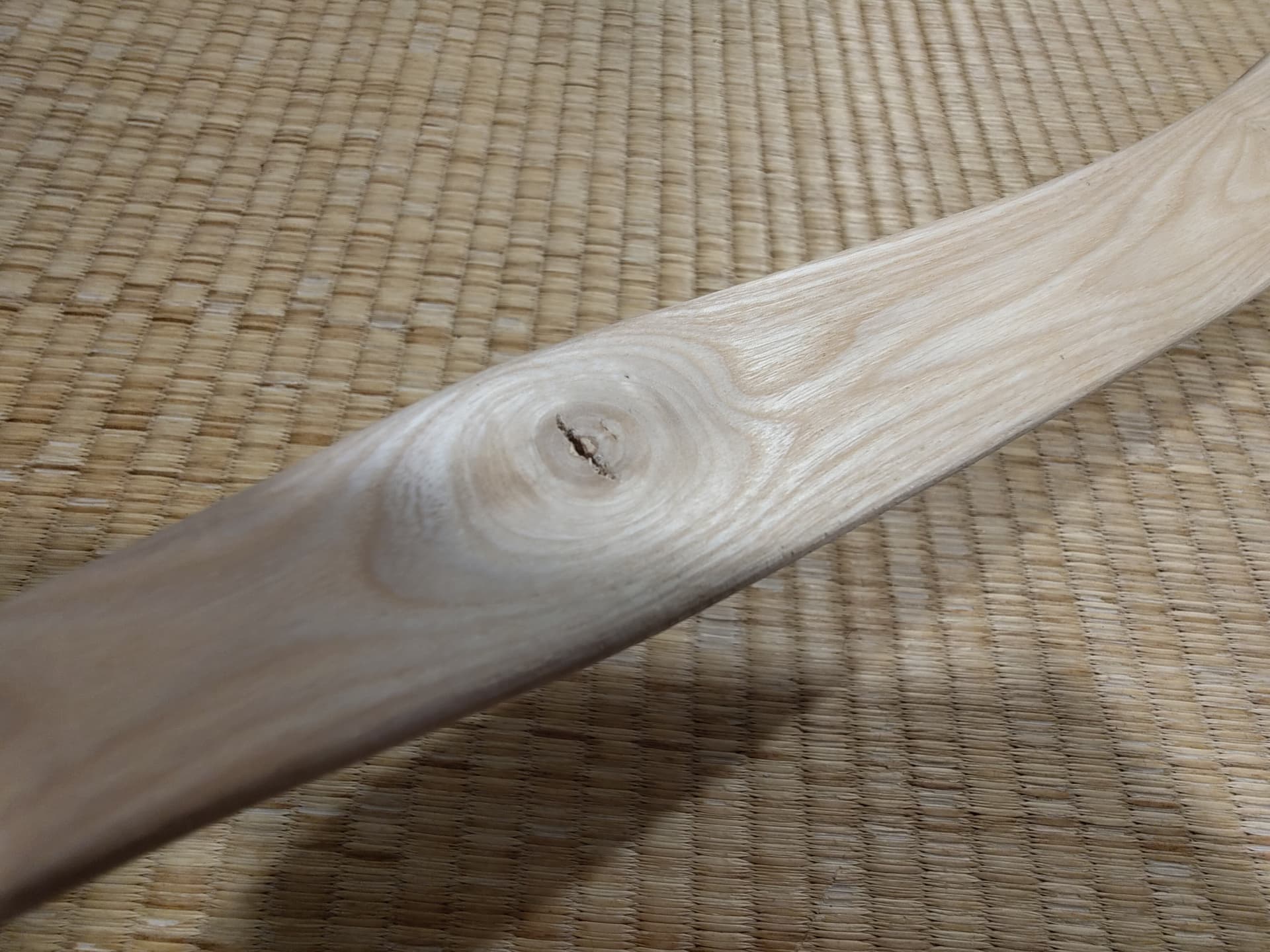 Jo puolisen vuotta työn alla ollut saarniflättäri alkaa valmistua. Tavoitteena oli tauluammuntaan ja metsäradoille käypä jousi, joka olisi ainakin jonkin verran edellistä jäykempi. Aihiossa oli monta suurta oksankohtaa, ja jousen etuprofiilin suunnittelu niitä mukaillen oli oma haasteensa. Päädyin jättämään oksien kohdalta lavat leveämmäksi ja lopputuloksena jousen etuprofiili on veikeän aaltoileva: