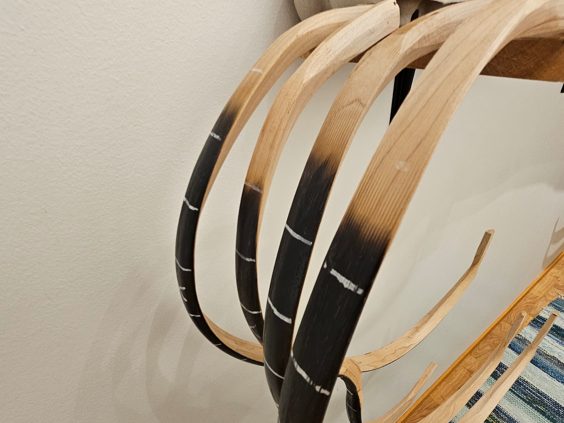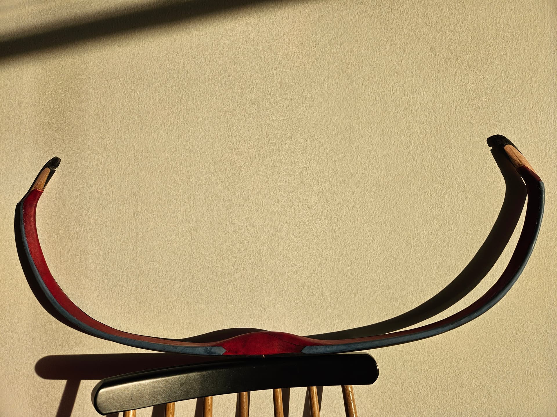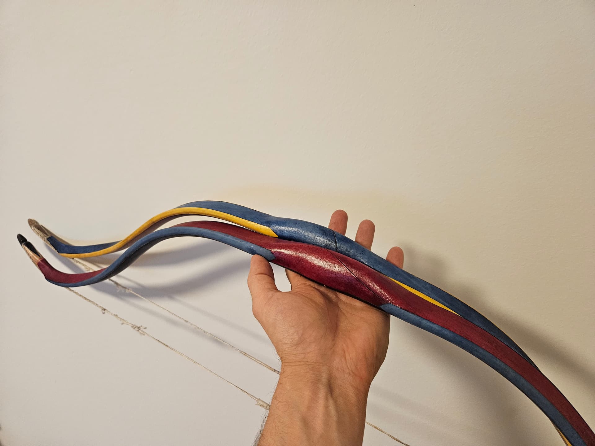 Kuten vähän mainittu, kahvamuoto on nyt erilainen. Kasanit on myöskin hieman koveria sivuiltaan ja sarvet päättyy puoleen väliin kasania. Kaikki hyviä juttuja suorituskyvyn kannalta. Pituusjouset laitan myös taipumaan lähempää kahvaa mutta hallitusti. Näissä kaikissa on tillerivaraa ja paksut sarvet, joten eikun vaan se 4,5mm jännettä jokaiseen!