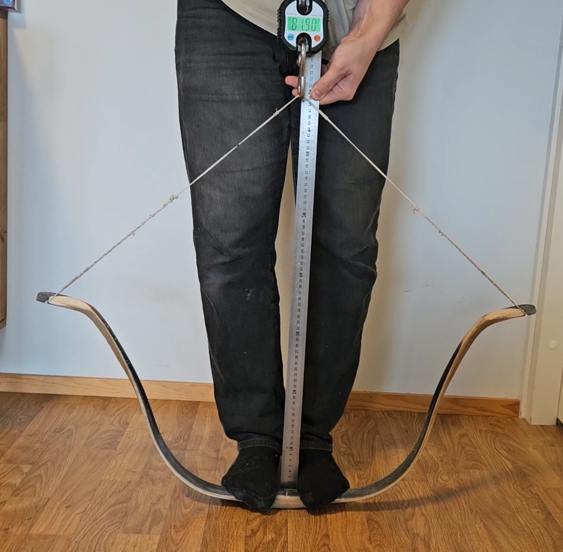 → Adam oli oikeassa massa/lapapaksuuksista. Top kapi jousien taulukossa 12,5mm kasan eye (ohuin kohta) tekee 127# jousen, kun jousi on 108cm ja 27" veto.