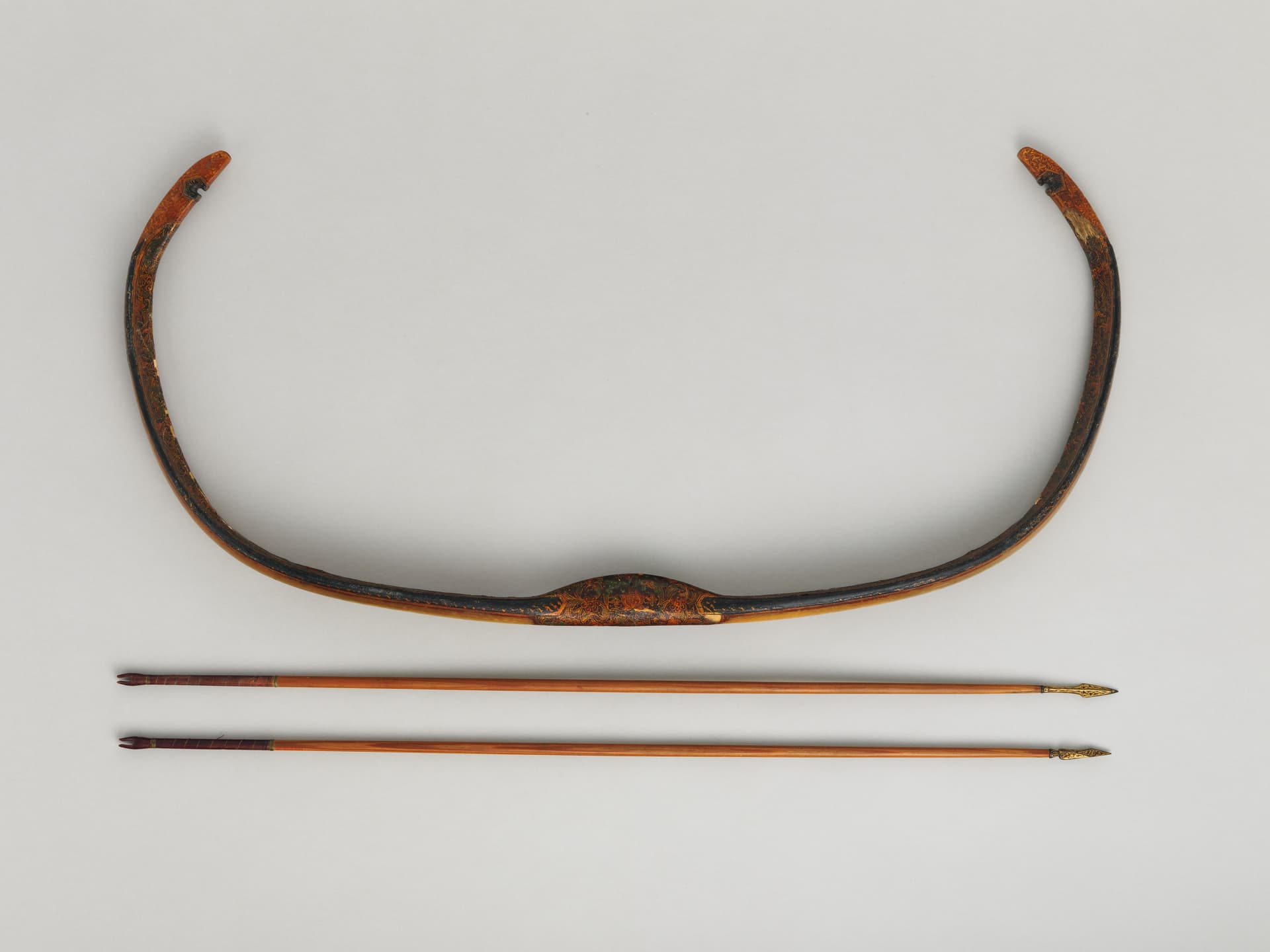 Tässä New Yorkin met-museon jousi, yksi lemppareista. Siinä vähän välimalli näistä, mutta silti huomattava paksuus nuolen ohituskohdassa.
