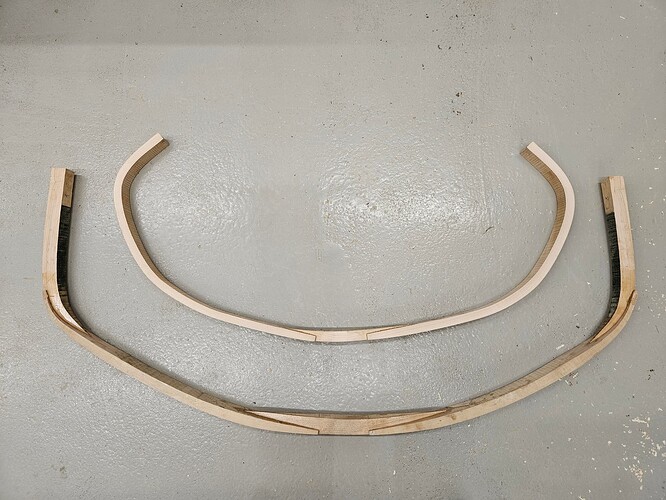Ensimmäinen kerros on nyt saanut rauhassa kuivaa. 200g meni jännettä näihin jousiin ja sillä ~1,2mm kerros kauttaaltaan lavoissa.