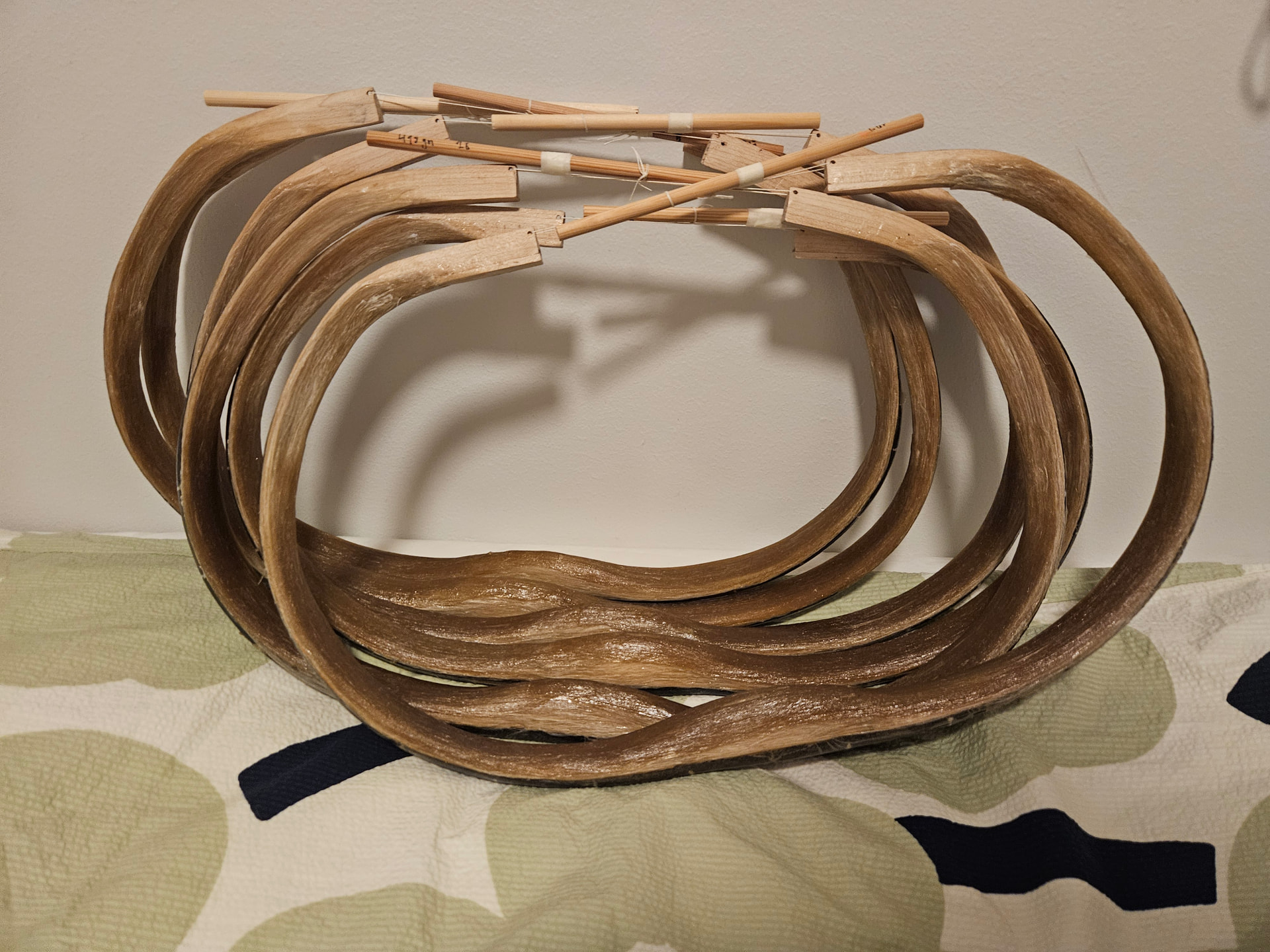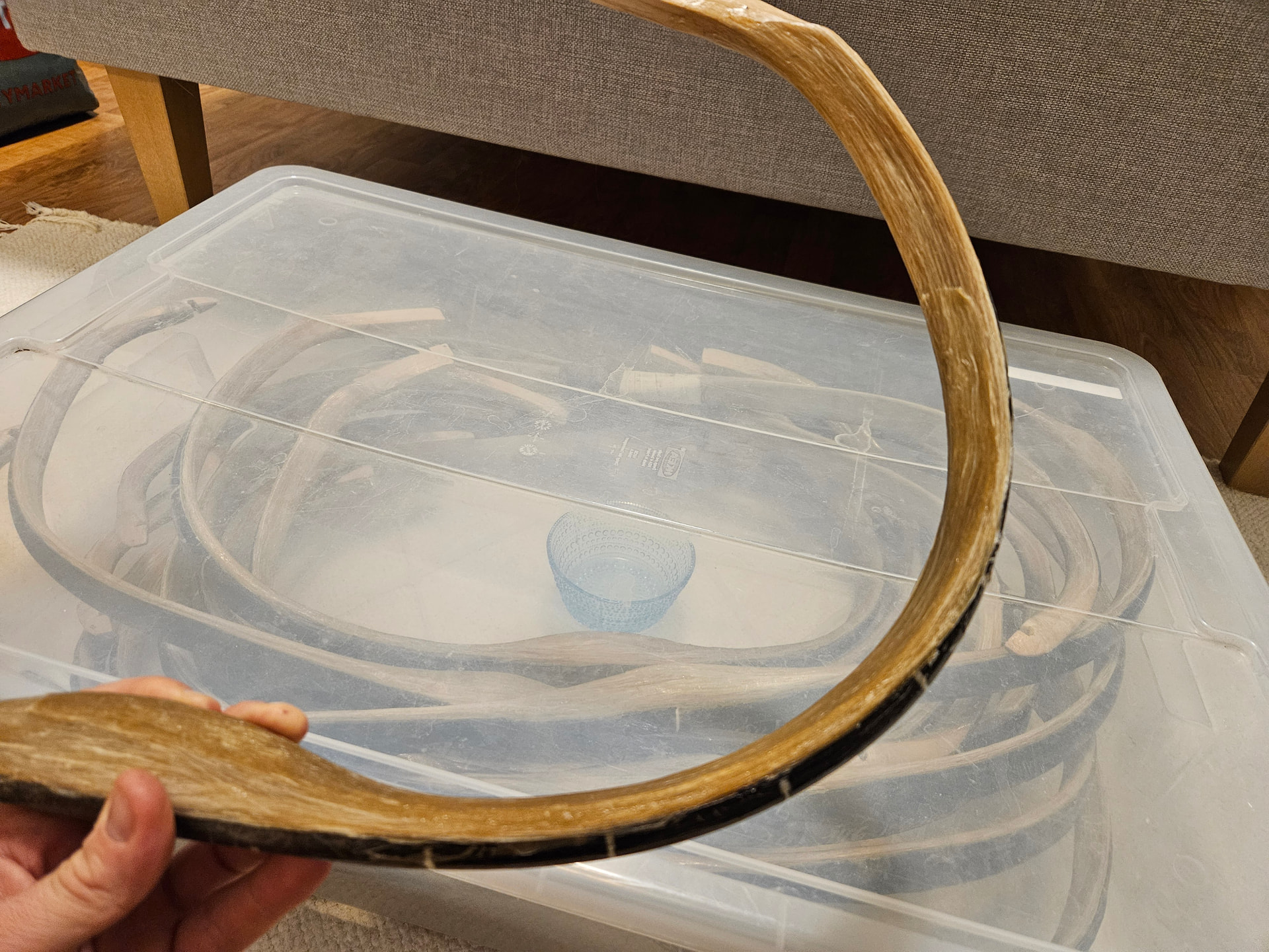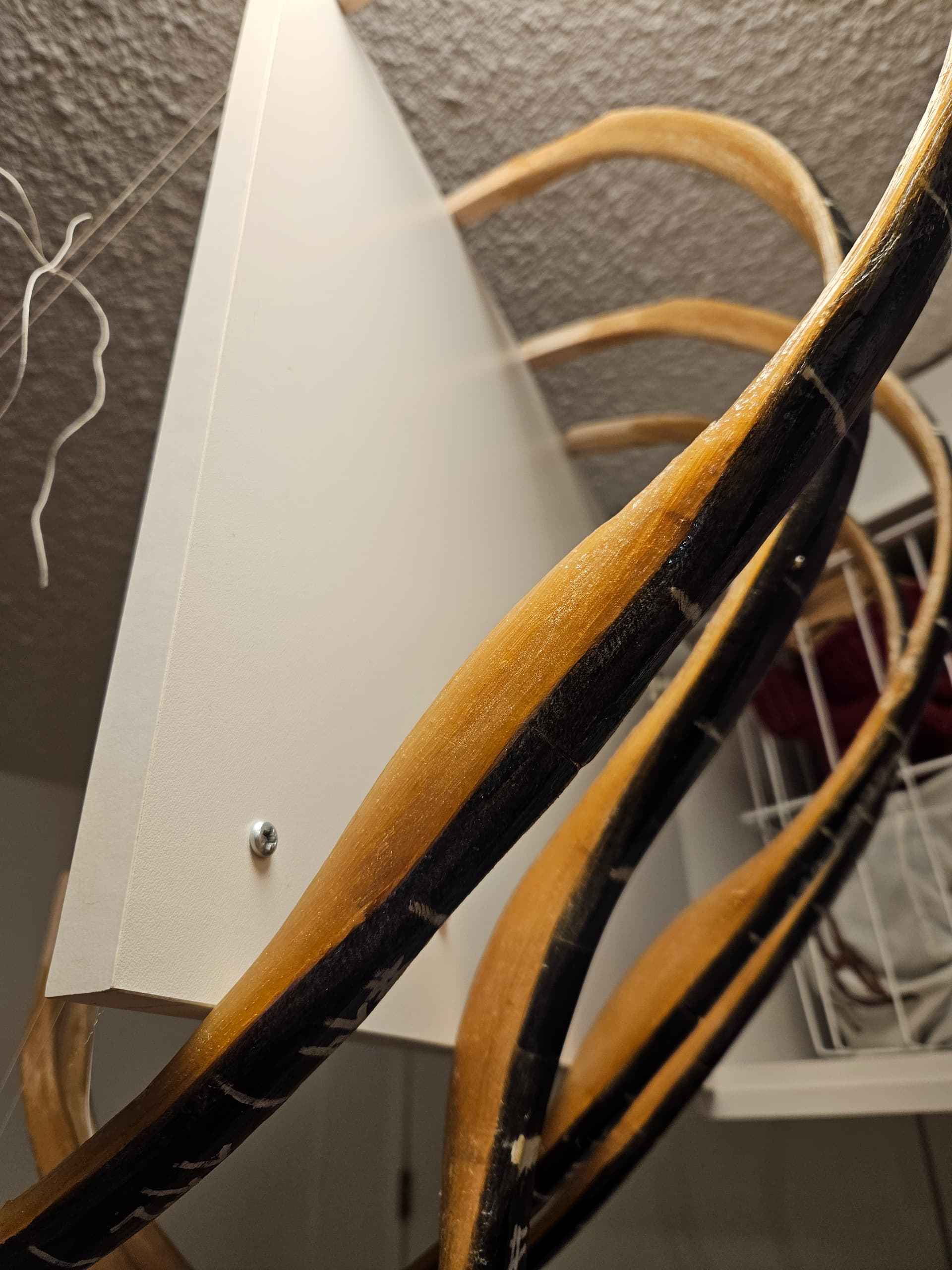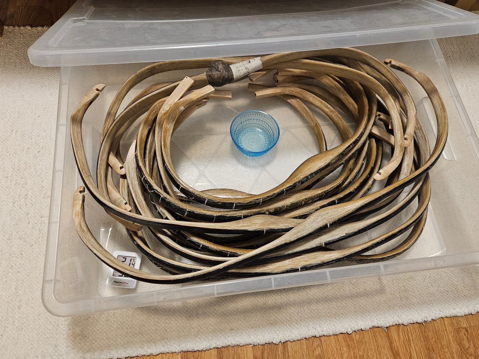 Nyt jännekakku jousissa 4-4,5mm taipuvissa osissa. Joka vaikuttaa hämmentävän paksulta! Nyt vasta kuitenkin n. 60g jännettä mennyt per jousi. Eli on mulla aika pienet määrät jännettä mennyt jousiin joissa olen 3,5mm jättänyt takavuosina.