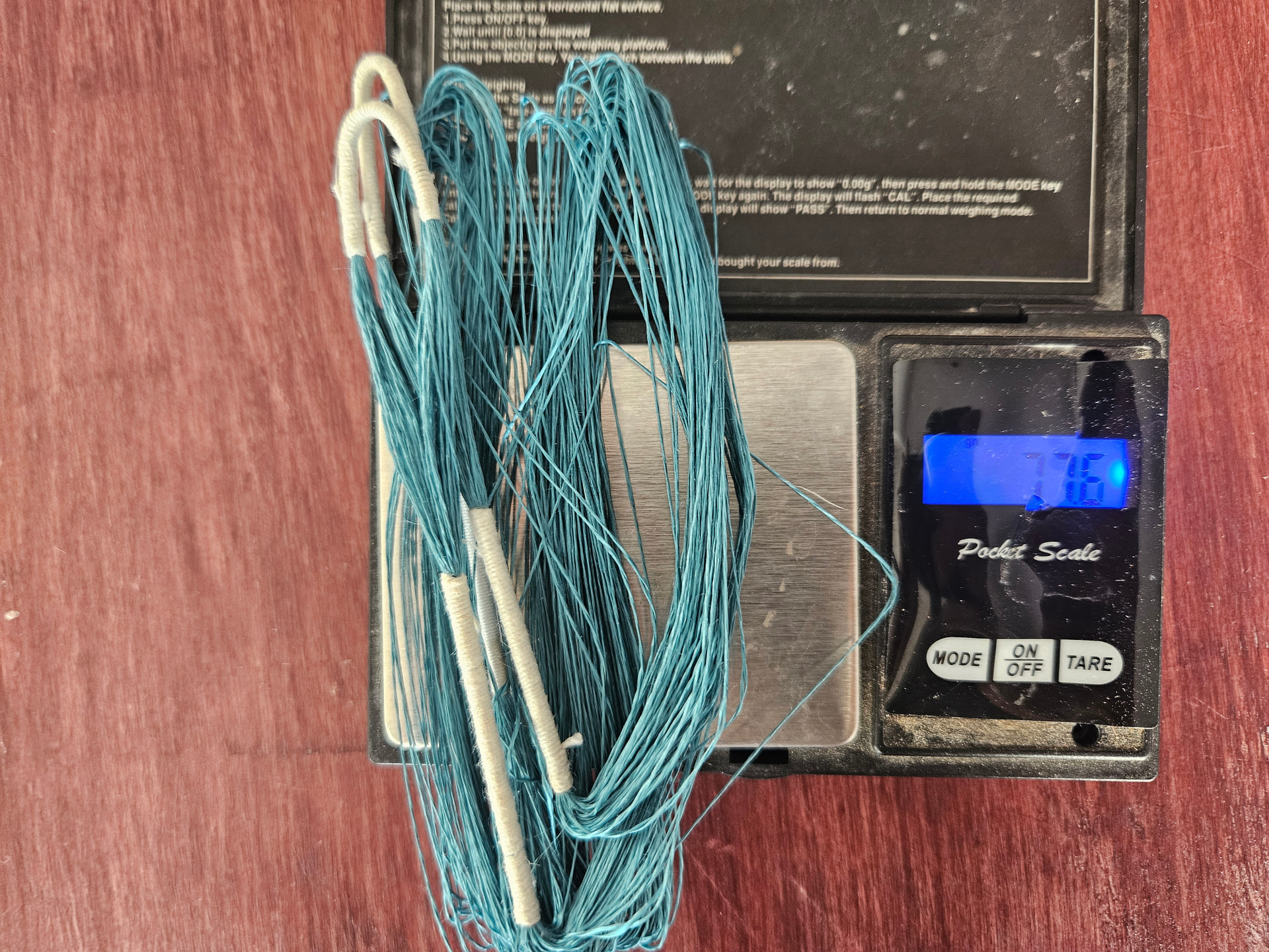 Nyt on palattu silkkijänneasiaan. Kuvassa 60 säikeinen jänne jossa pellavapunokset. Mittaa 1040mm. Tätä olisi tarkoitus kurittaa 116# jousessa ja katsoa kuinka monta laukausta kestää. Ehkä myös kronottaa ja ampua pituutta jossain vaiheessa. Oppisi vähän näiden jänteiden rajoista.