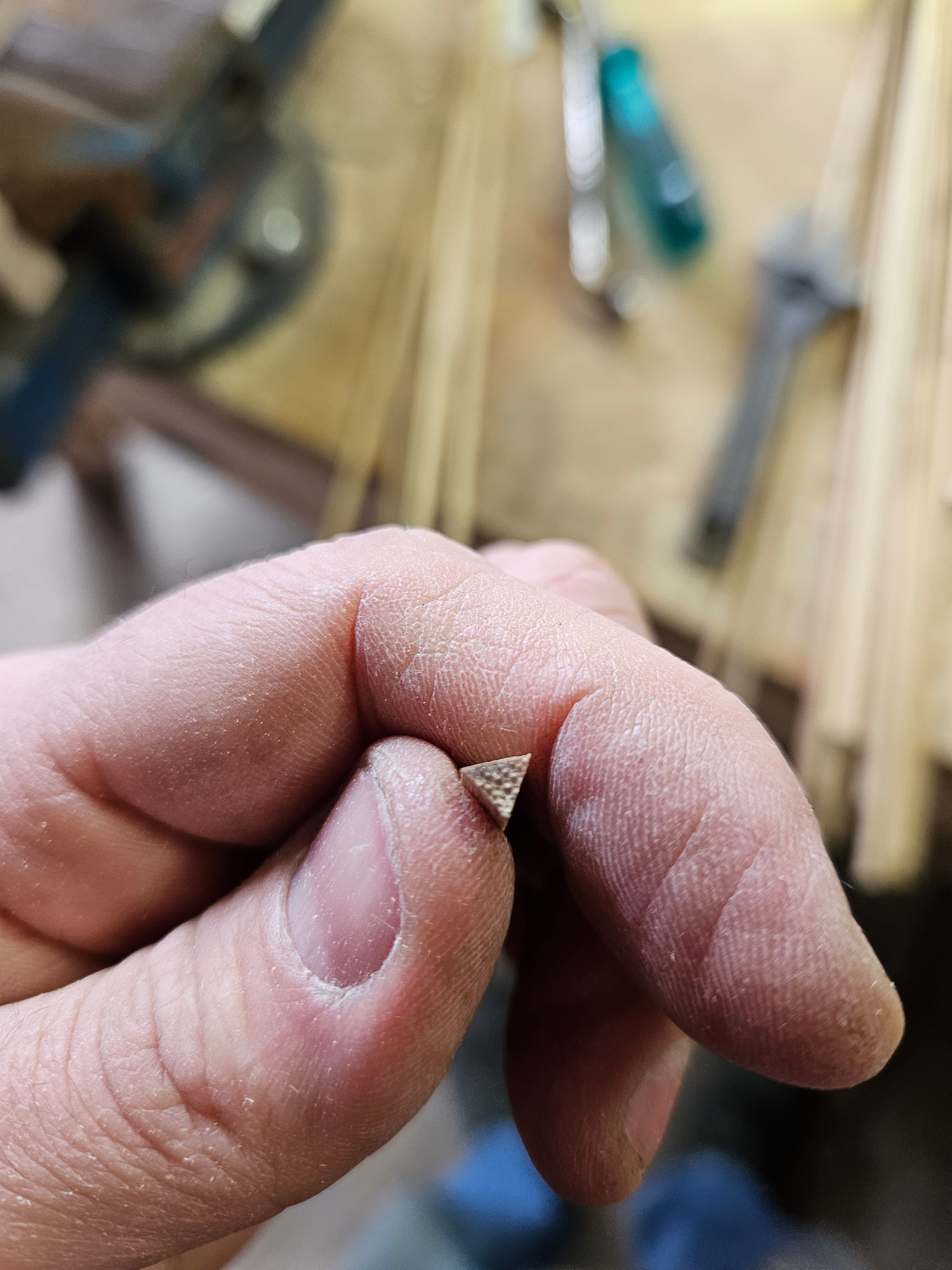 Jospa saisi sitten ensi kaudeksi tehtyä noitakin nuolia. Kolmioksi työstäminen käsin on vähän turha vaihe, koska sen tosiaan voi koneistaa ja tehdä siten paljon tehokkaammin. Aika on rajallinen resurssi ja (melkein) kaikki, mikä tehostaa tekemistä on hyvä! Tuossahan jää sitten käsityöksi ehkäpä tärkein vaihe, barrelointi.