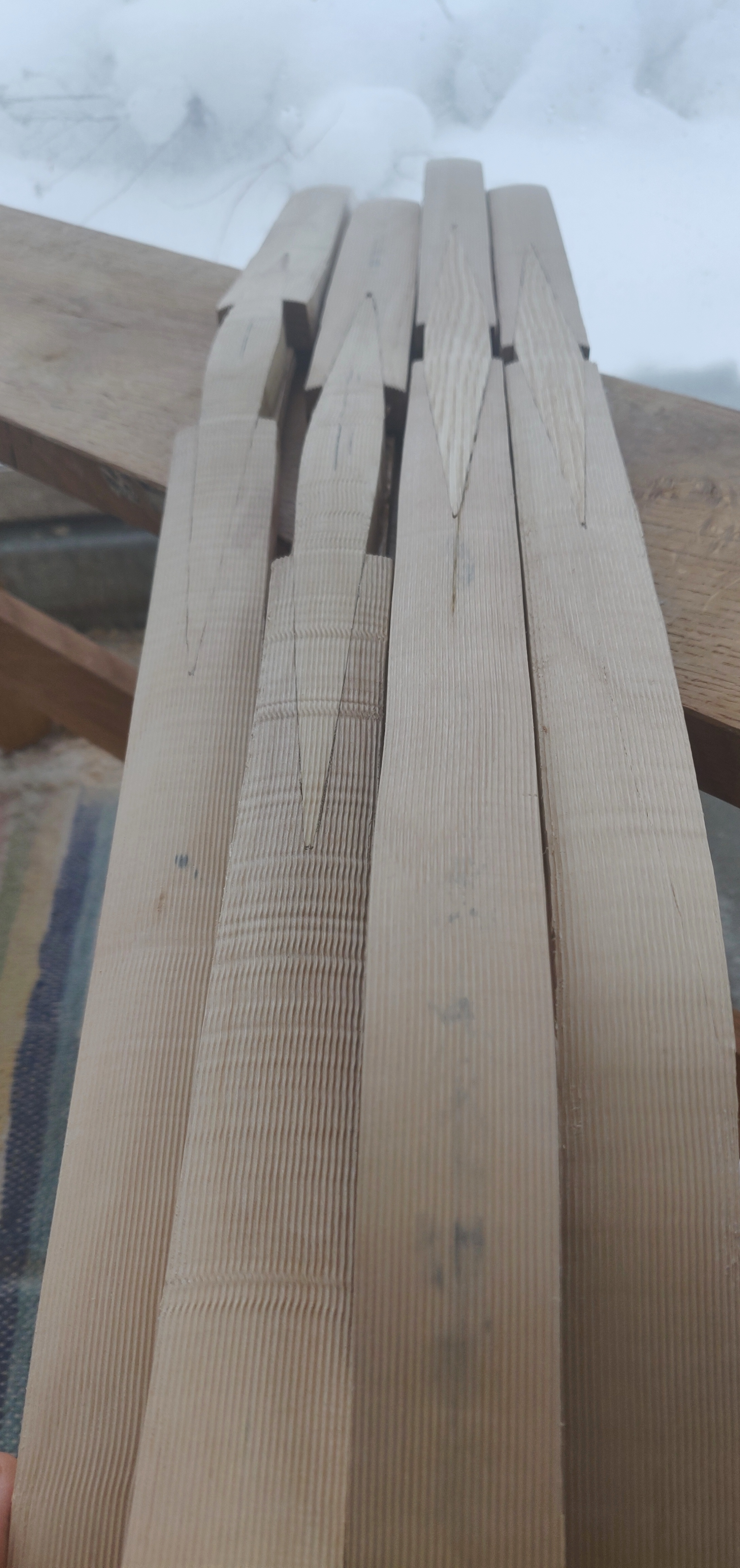 Vedin noita taulu/sotajousia jännekorkeuteen ja aikamoista tykkiä lupaa. Eikä tillerimuoto ollut huono ollenkaan ensimmäiseksi taivutuskerraksi. On tullut vähän oivalluksia näiden tilleröinnissä, jonka seurauksena korjasin kesäisen pituusjousenkin tilleriä. Näköjään oon liikaa kurittanut kasan-eyeta jousessa, siksi refleksi on tupannut lähtemään jousesta.