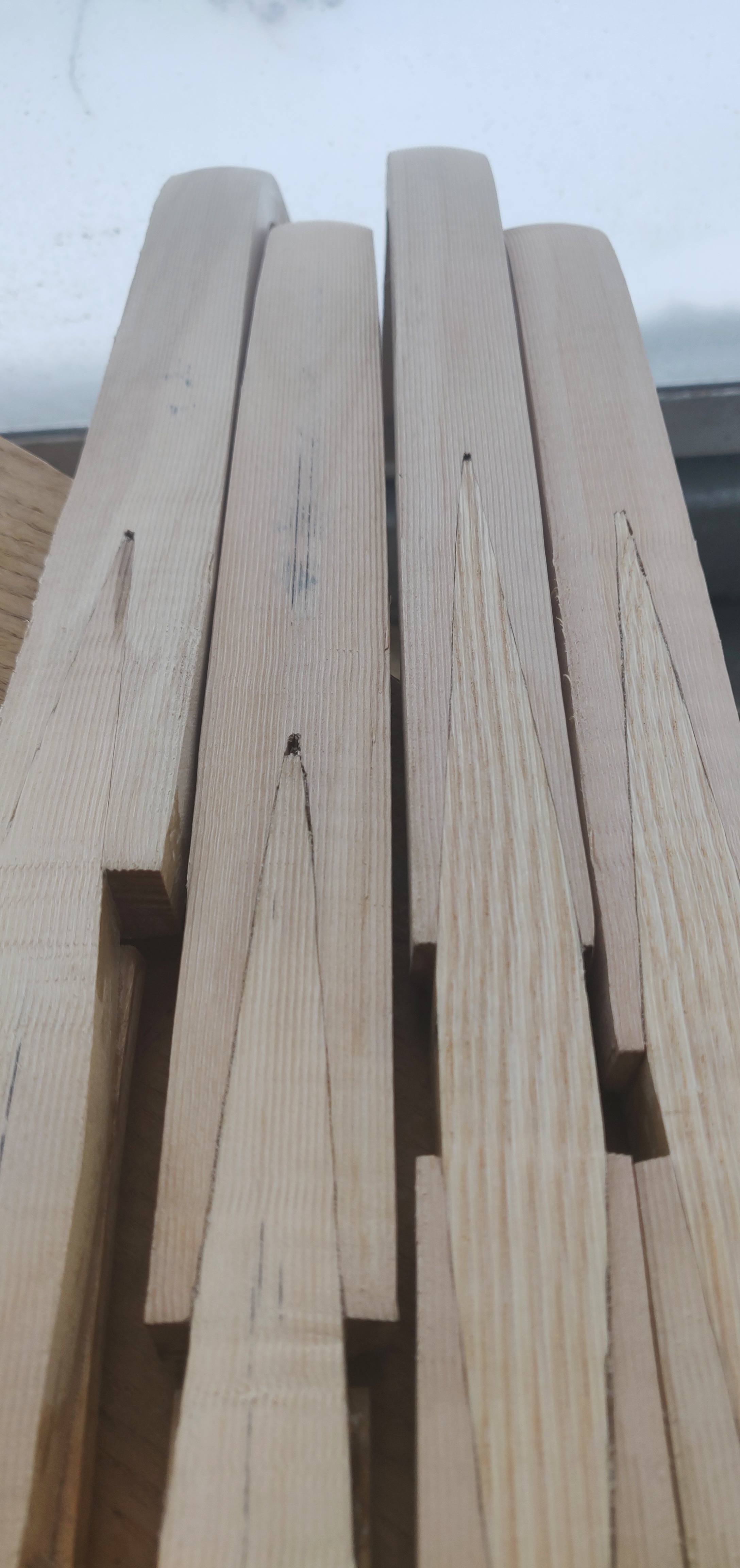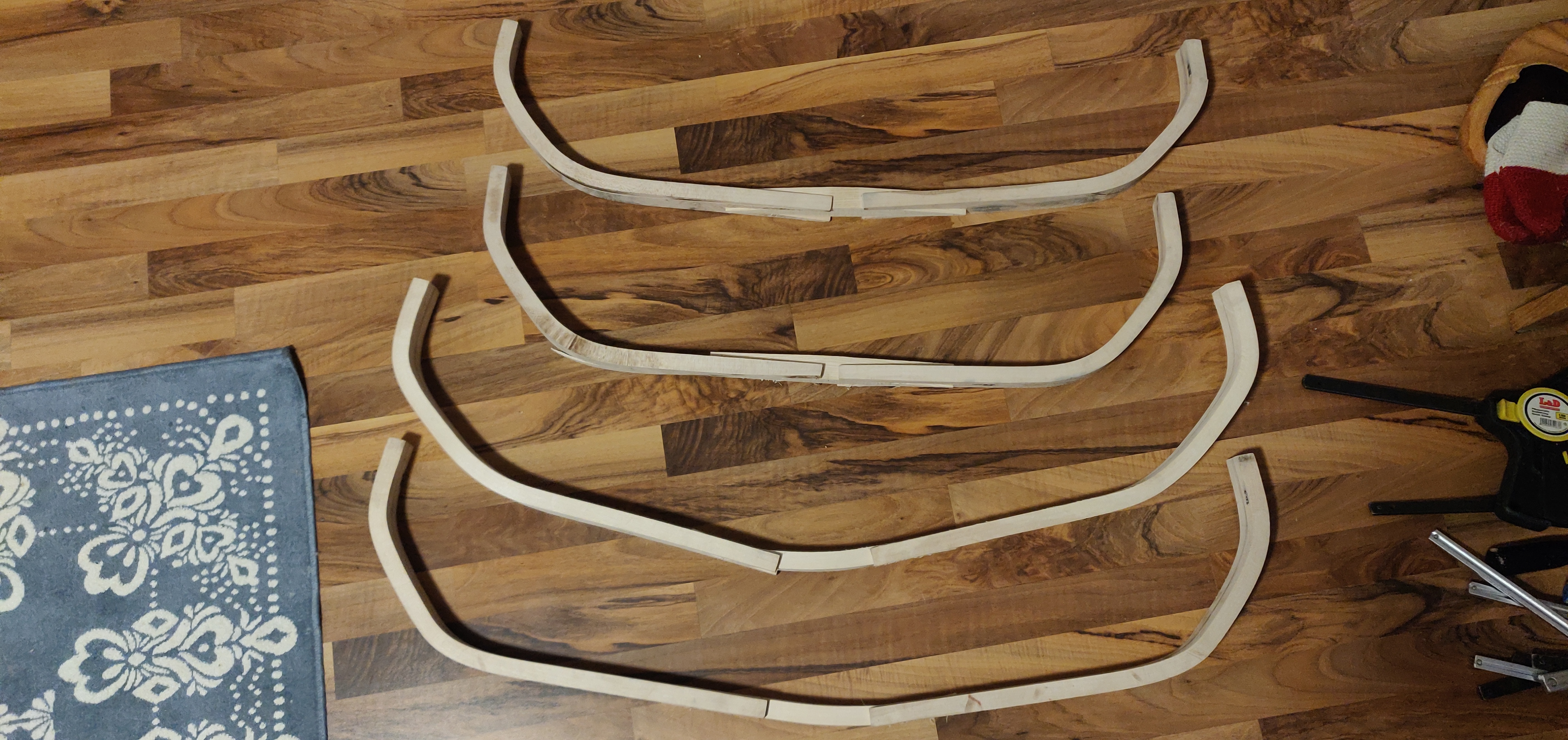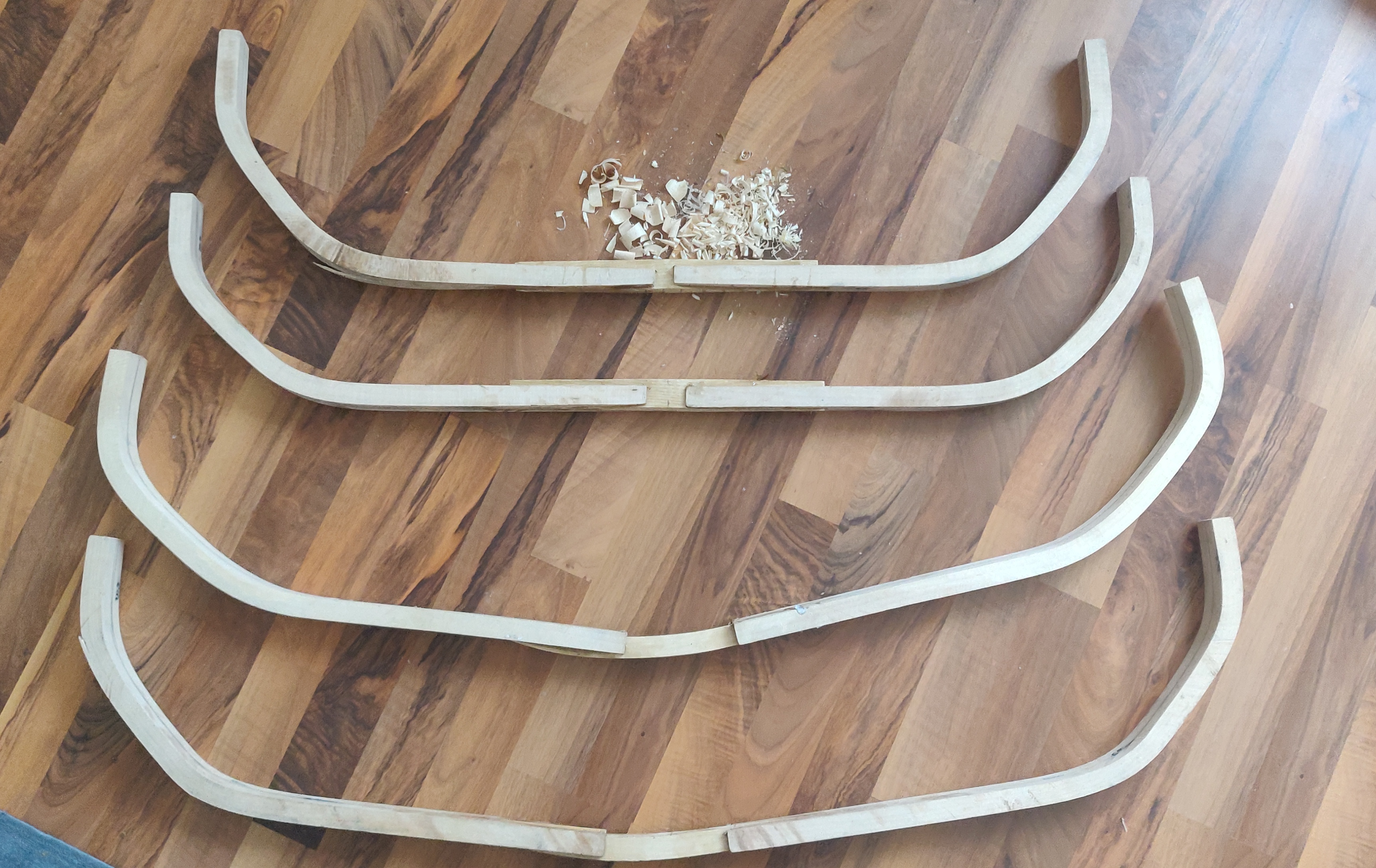 Coret uritettu. Nyt päätin tehdä vähän vähemmän koveralla liimapinnalla. Näihin tehdään testejä, yksi pelkällä kalaliimalla, toiseen mahdollisesti hunajaa liiman sekaan? Ja geeliytettään liimoja kylmemmässä lämpötilassa. No kaikkihan on aina uutta testaamista, kun lisää oppii…