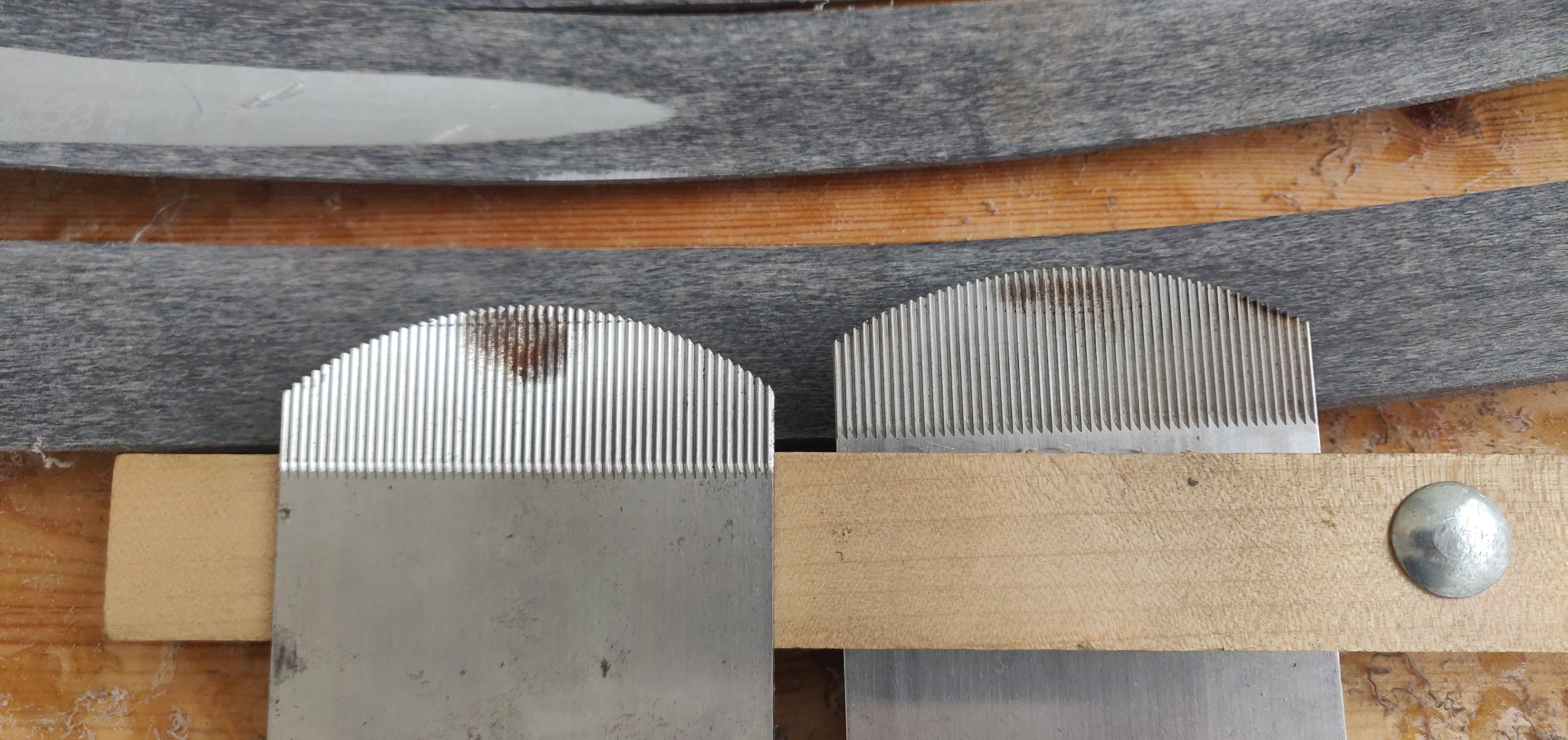 Vasemman puoleinen (millä viimeiset 10 on tehty) sikli on noin 2,7mm syvä kun lapa on 30mm leveä. Oikean puoleinen (mitä kokeilen nyt) on 1,7mm syvä kun lapa on 30mm leveä.