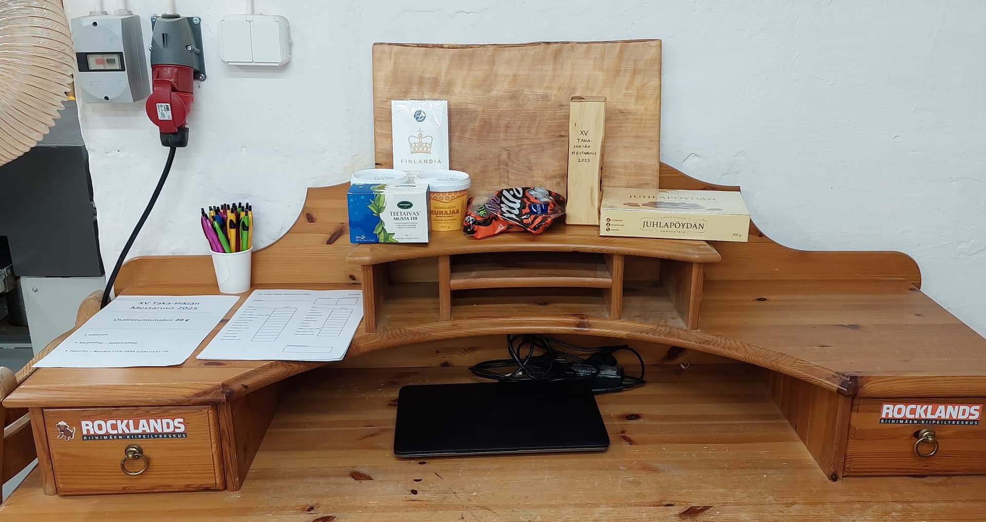Nyt on pokaali valmis, palkinnot hankittu, eväät tilattu, ratasuunnitelma valmis, vajaa puolet radasta pystytetty, verstasta siivottu.